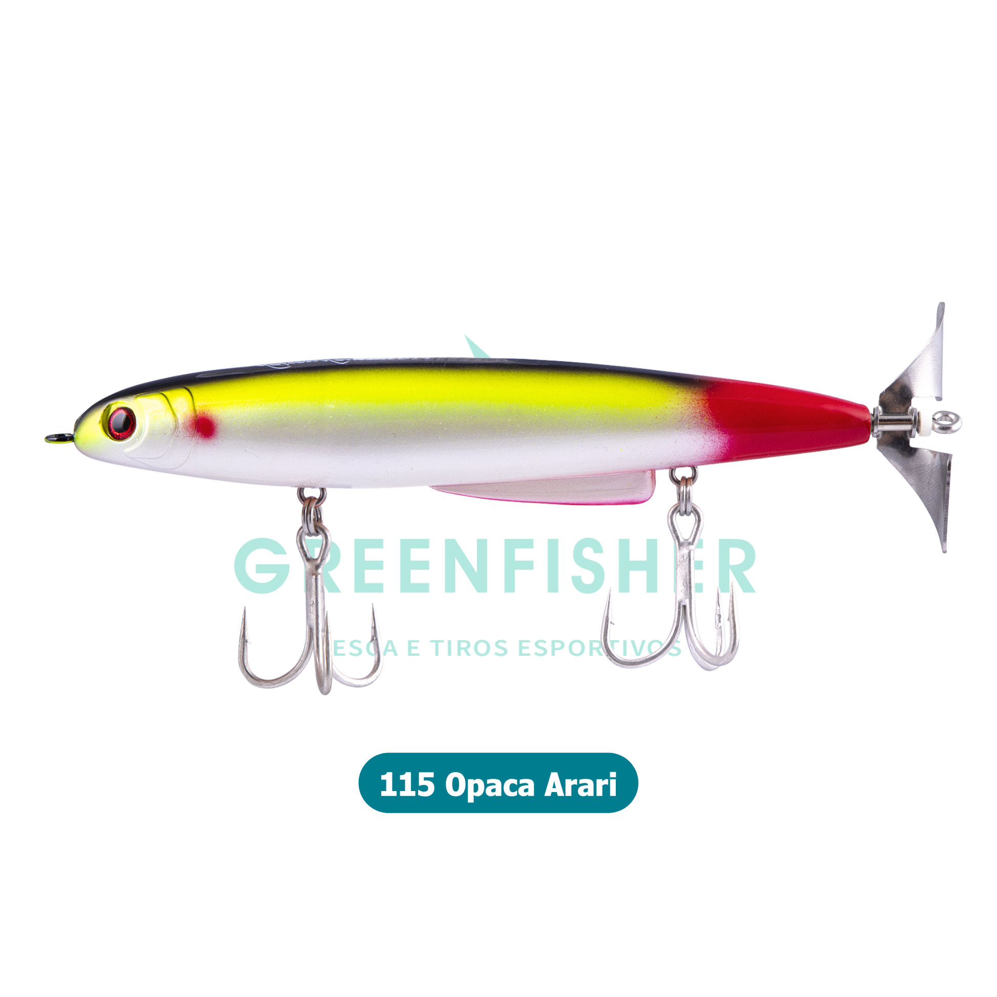 ISCA ROCKET 140 - 28GR / NELSON NAKAMURA A nova isca artificial de superfície com ação de hélice, desenvolvida especialmente para a pescaria dos tucunarés amazônicos. Possui sistema magnético, proporcionando arremessos mais longos e precisos. O seu pitão de arrasto frontal é reforçado. A hélice em aço, possui luvas, evitando o desgaste do pitão. Aleta (quilhas) na barriga, evita girar o corpo durante o trabalho. Trabalho da isca Arremesse a ROCKET no ponto desejado, em seguida dê puxadas médias e longas para a hélice entrar em ação e fazer o tradicional ruído. Diferenciais Nunca ocorrerá o desalinhamento da hélice. A hélice de alumínio produz um ruído mais estridente. Nunca ocorrerá o desgaste no pitão. A barriga da ROCKET é mais achatada e possui uma aleta (quilha), evitando o giro da isca até mesmo nas puxadas mais fortes. Munida de garateia 4 X n 1. Principais Características Isca Superfície Ação: Hélice Garatéias N1 Tamanho: 14cm Peso: 28gr