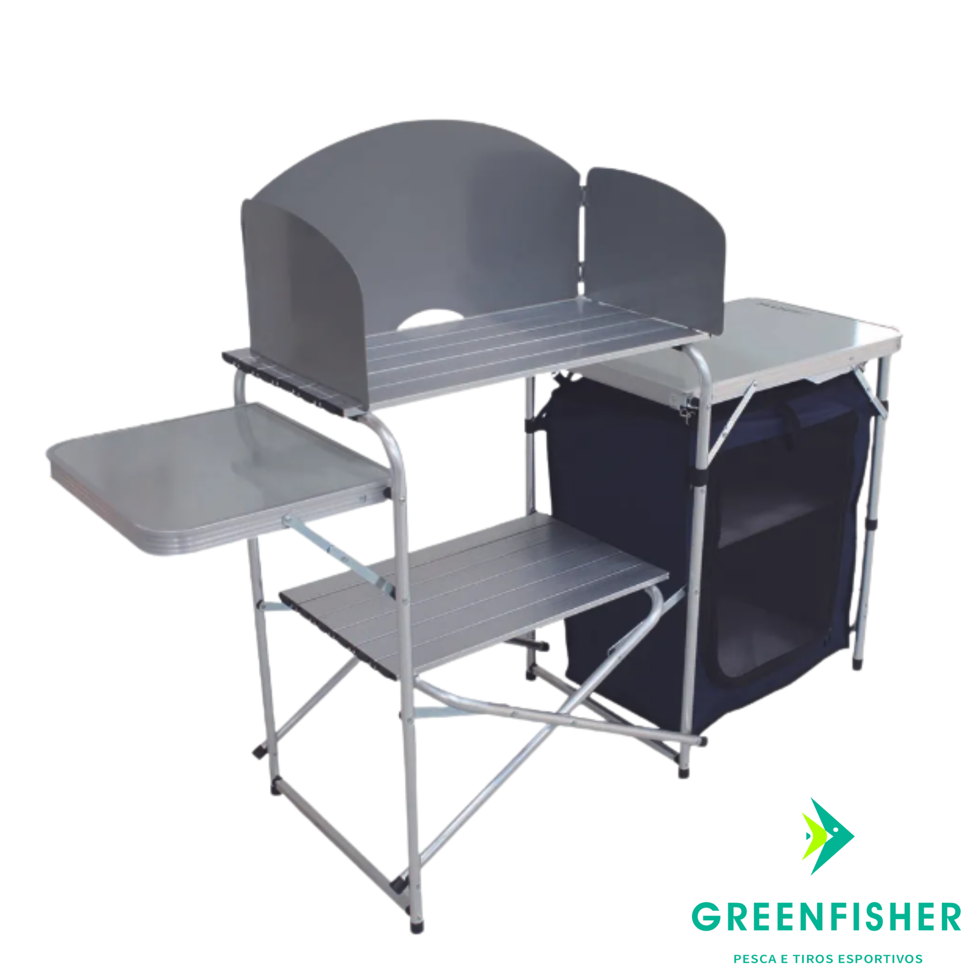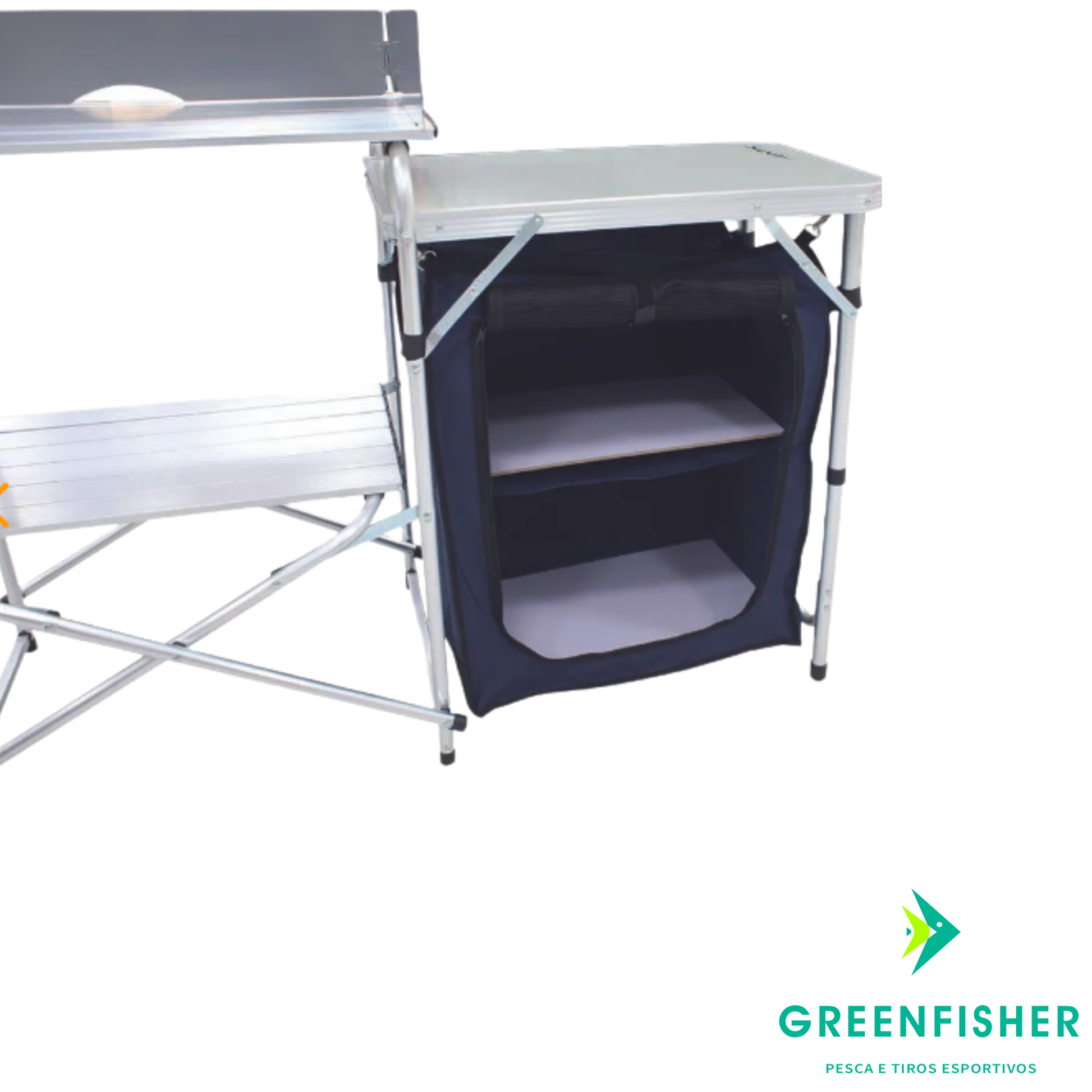 A Mesa com Armário Serena da Nautika é a solução definitiva para manter a ordem em suas aventuras outdoor. Totalmente desmontável e prática, ela é ideal para ser utilizada em campings ou em qualquer área externa, transformando seu espaço com organização e conveniência.