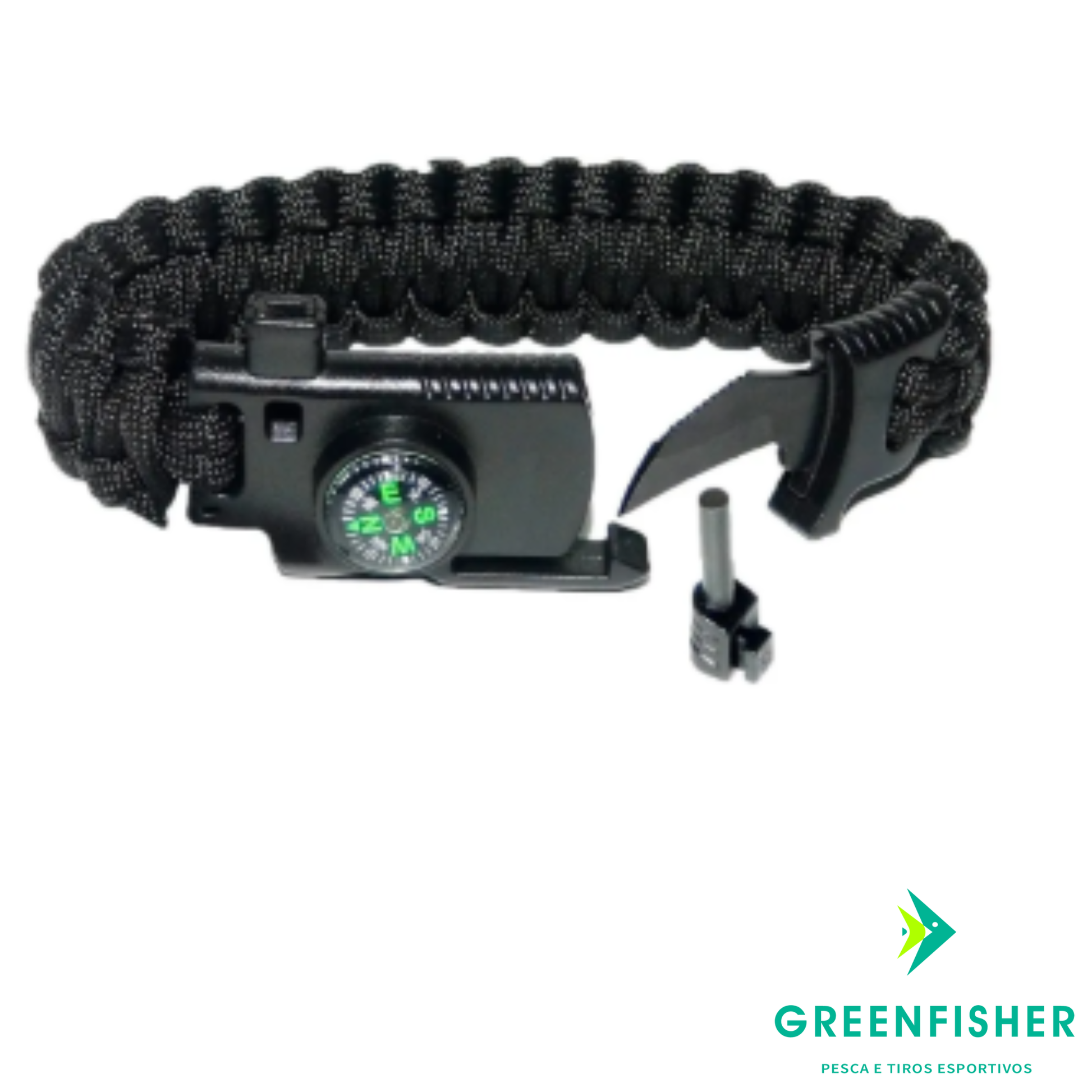 Corda de Poliamida: O bracelete pode ser desmanchado para uso da corda de alta resistência em armadilhas, amarrações ou emergências.